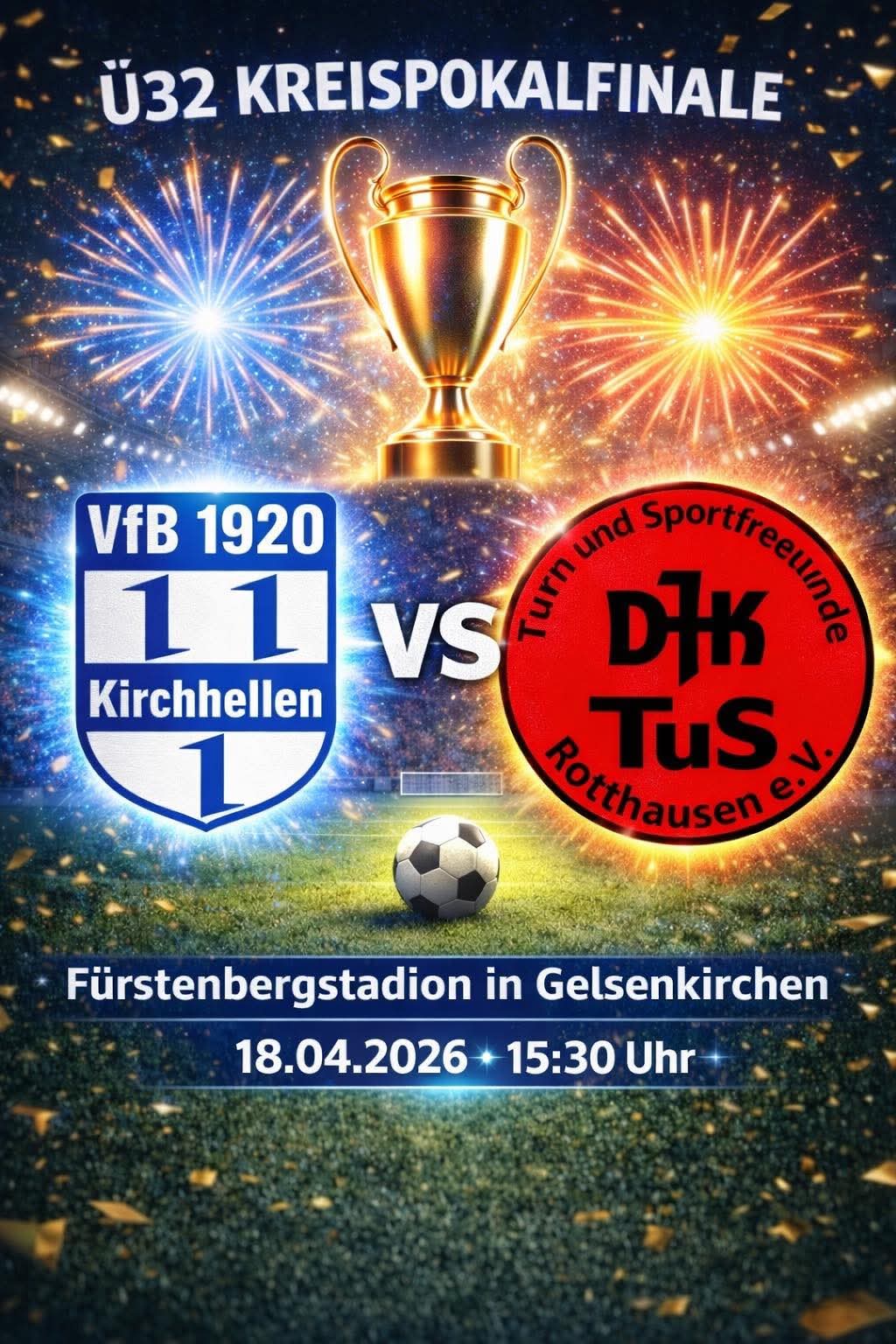 Bereits nach rund zehn Minuten durften die Gastgeber das erste Mal jubeln: Fatlind Hashani köpfte nach einem Freistoß ganz stark zum 1:0 ein. Das Spiel war in der Folge völlig offen. Hüls traf den Außenpfosten und touchierte die Latte nach Standards, Kirchhellen kombinierte sich ebenfalls mehrfach in gute Abschlusspositionen. Zehn Minuten vor Spielende erlöste Nael Kotzur nach feiner Einzelleistung Trainer , Zuschauer und Mitspieler mit dem 2:0. Marl-Hüls versuchte sich aufzubäumen, aber der Kirchhellener Beton ließ nichts zu.